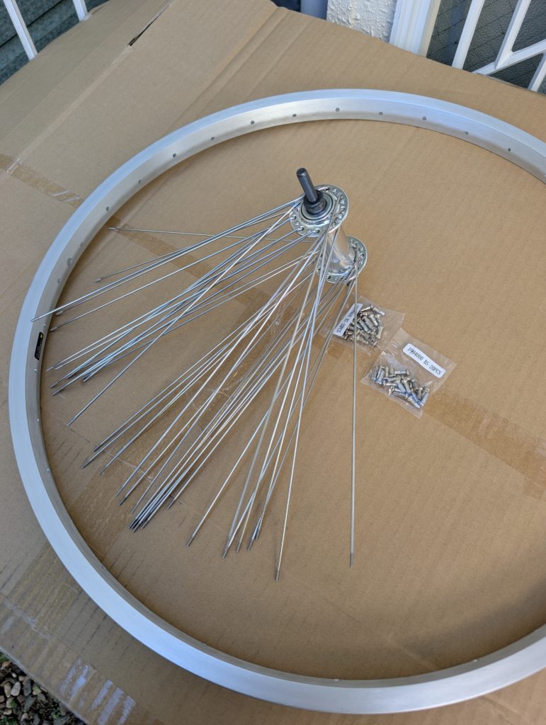 ハブにスポークを通して組んでいきます。