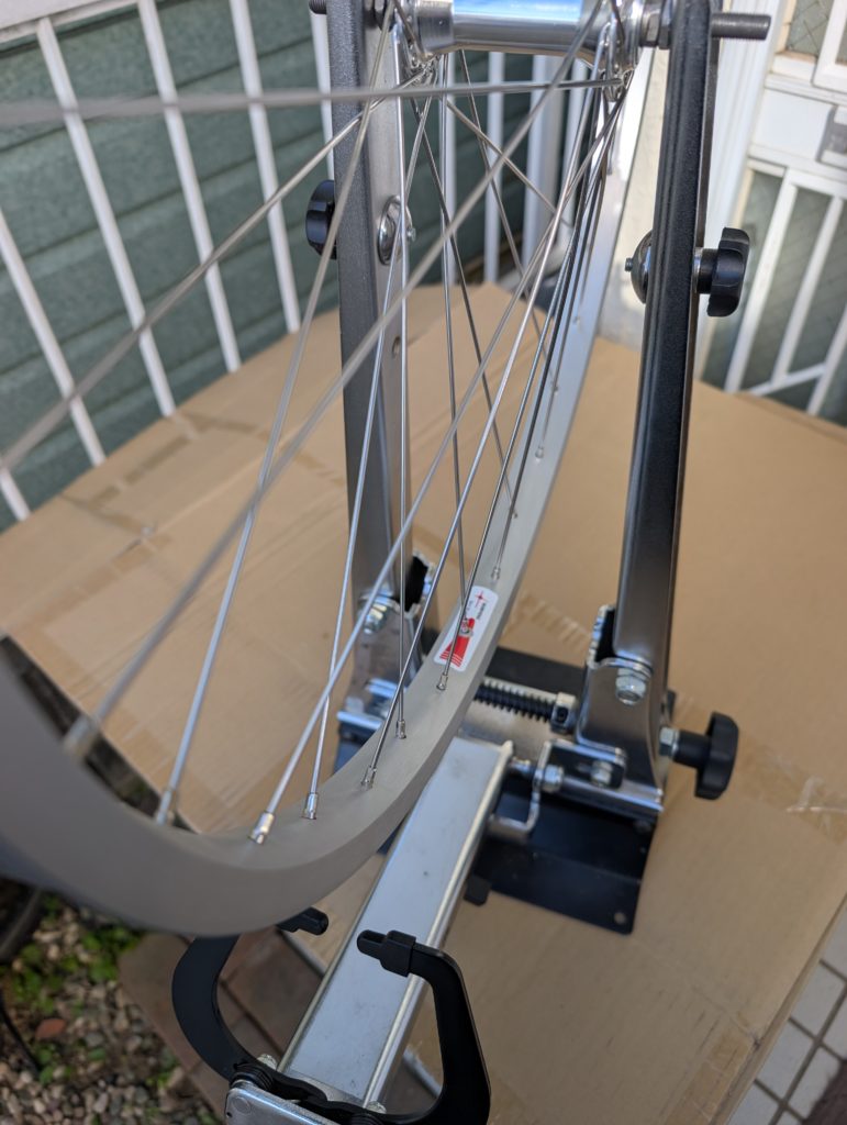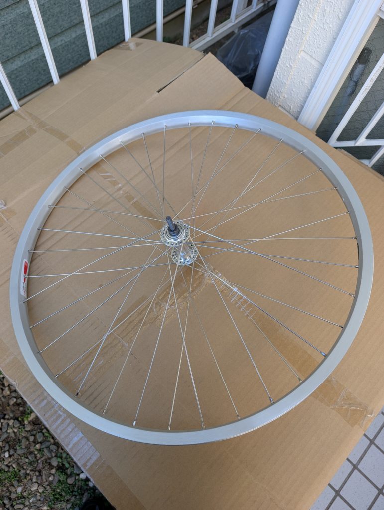 ホイール交換のお客様用に車輪を組みます。