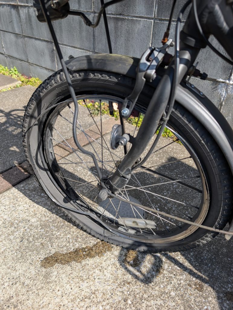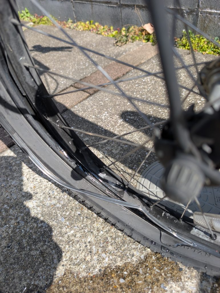 ヤマハ PAS babby un のホイールリムがバッキバキに割れています。