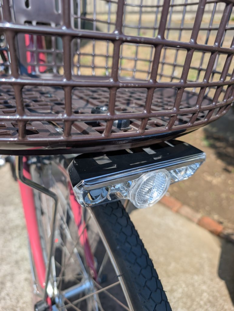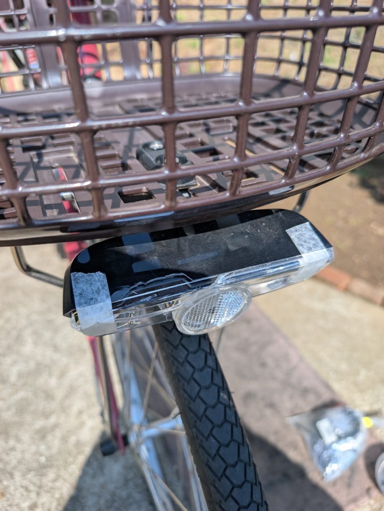 ライトが破損してテープで止めてあります。