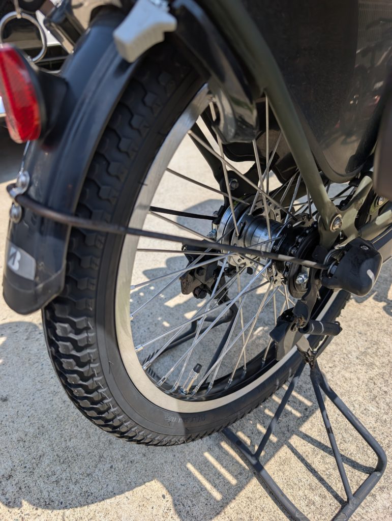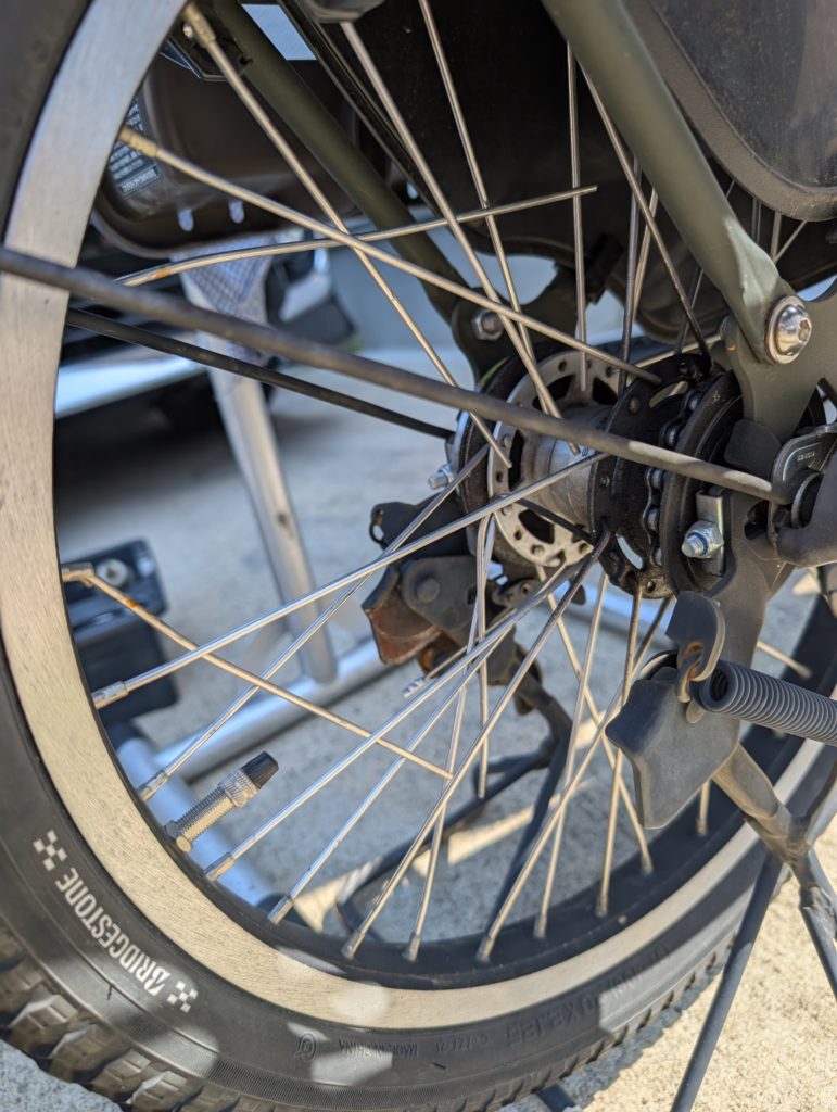 車輪を下ろし、折れたスポークを外してみました。