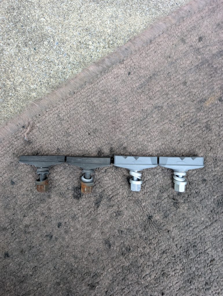 どちらの画像も減ったシューと純正新品シューを並べています。