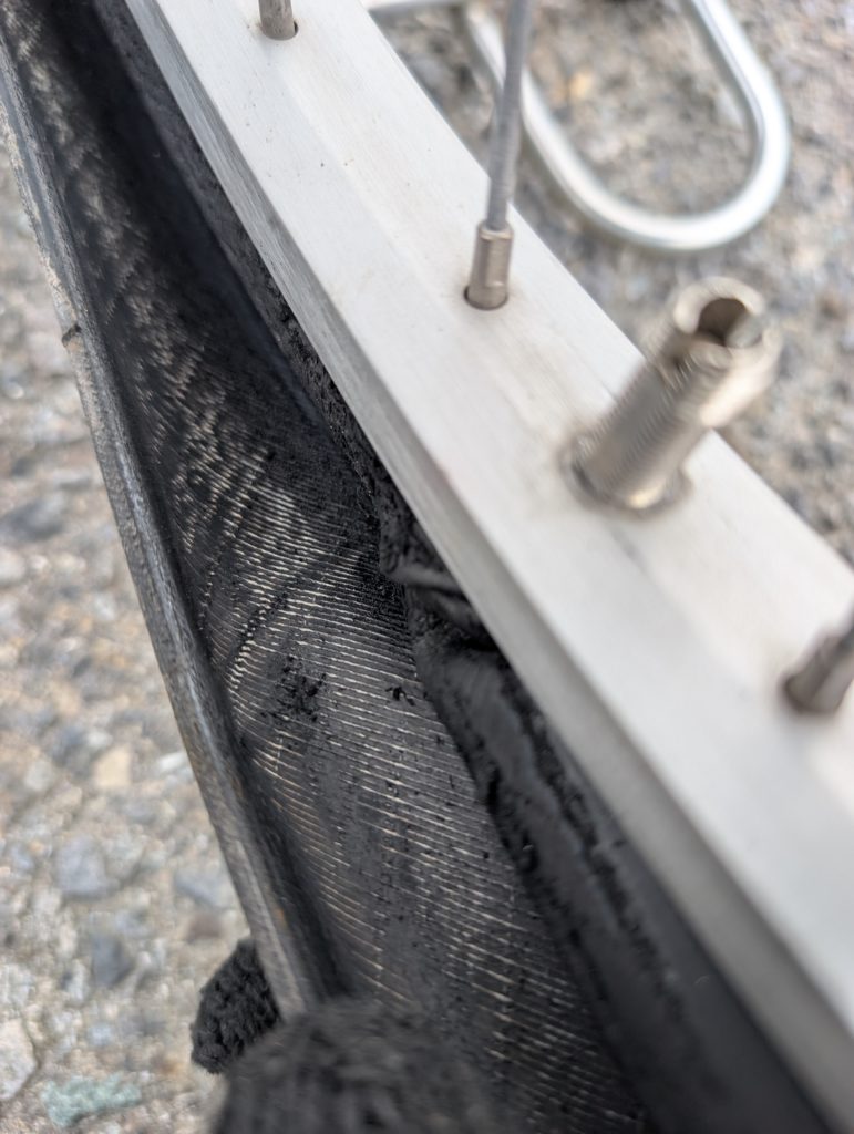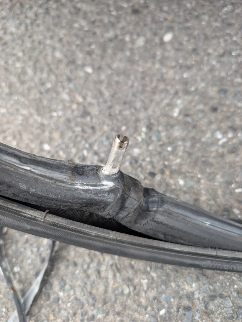 タイヤを開けるとタイヤの内側がボロボロです。