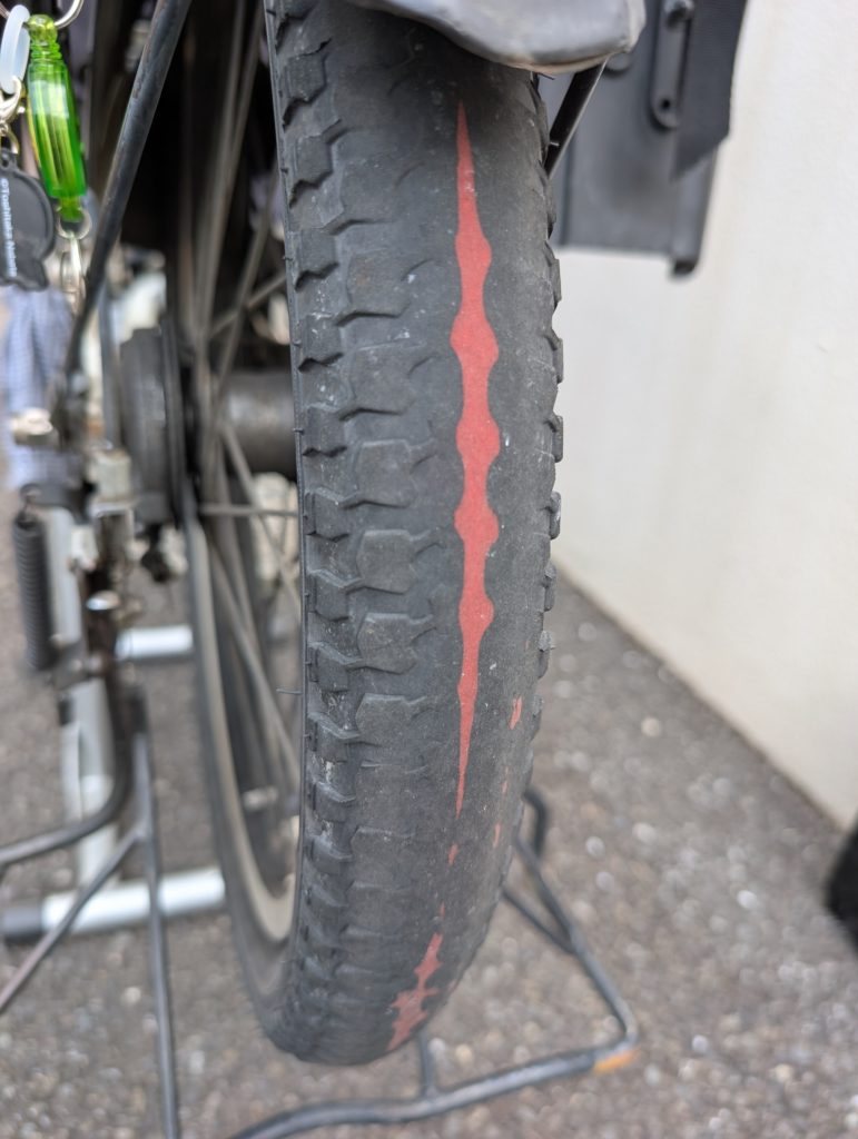 タイヤが減って中からプロテクターのようなものが見えてきてます。