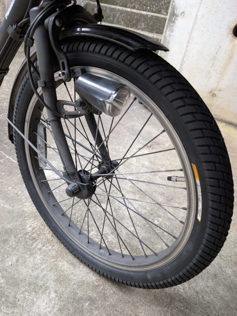 ブレーキシューが減り過ぎてタイヤに当たり切れています。