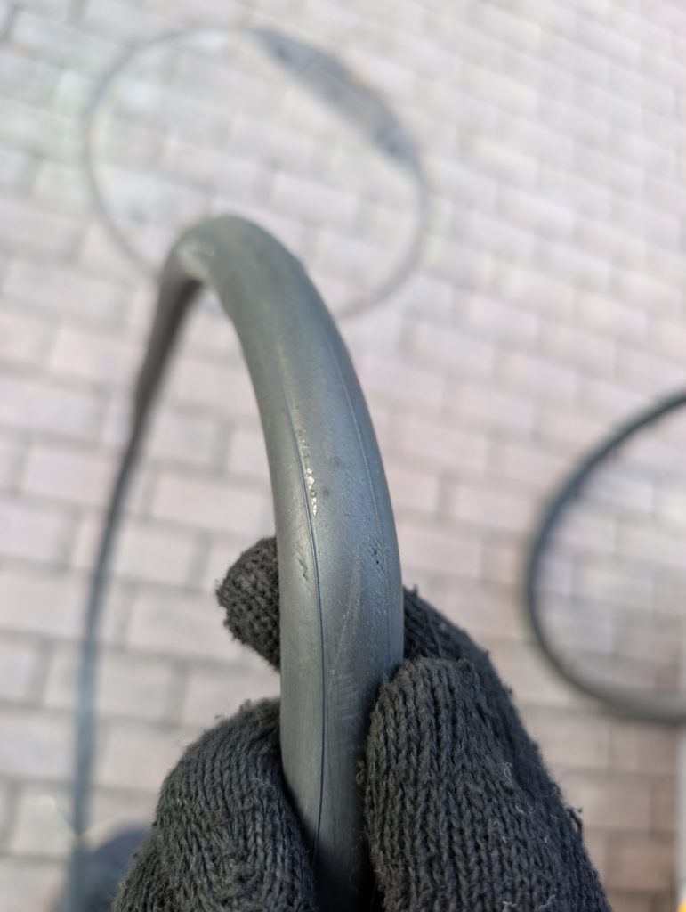 空気圧が少ないと段差でゴツンと切れます。